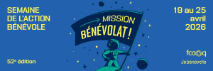 Du 19 au 25 avril, la Semaine de l’action bénévole met en lumière l’engagement de millions de personnes à travers le Canada. Au Québec, la Fédération des Centres d’action bénévole (FCABQ) propose le thème « Mission Bénévolat! », rappelant qu’une grande transformation commence souvent par un geste simple : celui de vouloir faire une différence.