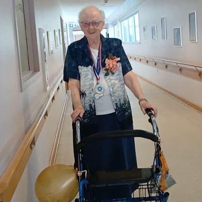 On la croise régulièrement dans les corridors, marchette à l’appui, prenant le temps de regarder à l’extérieur ou de saluer une compagne au passage. Une manière bien à elle de cultiver les liens.